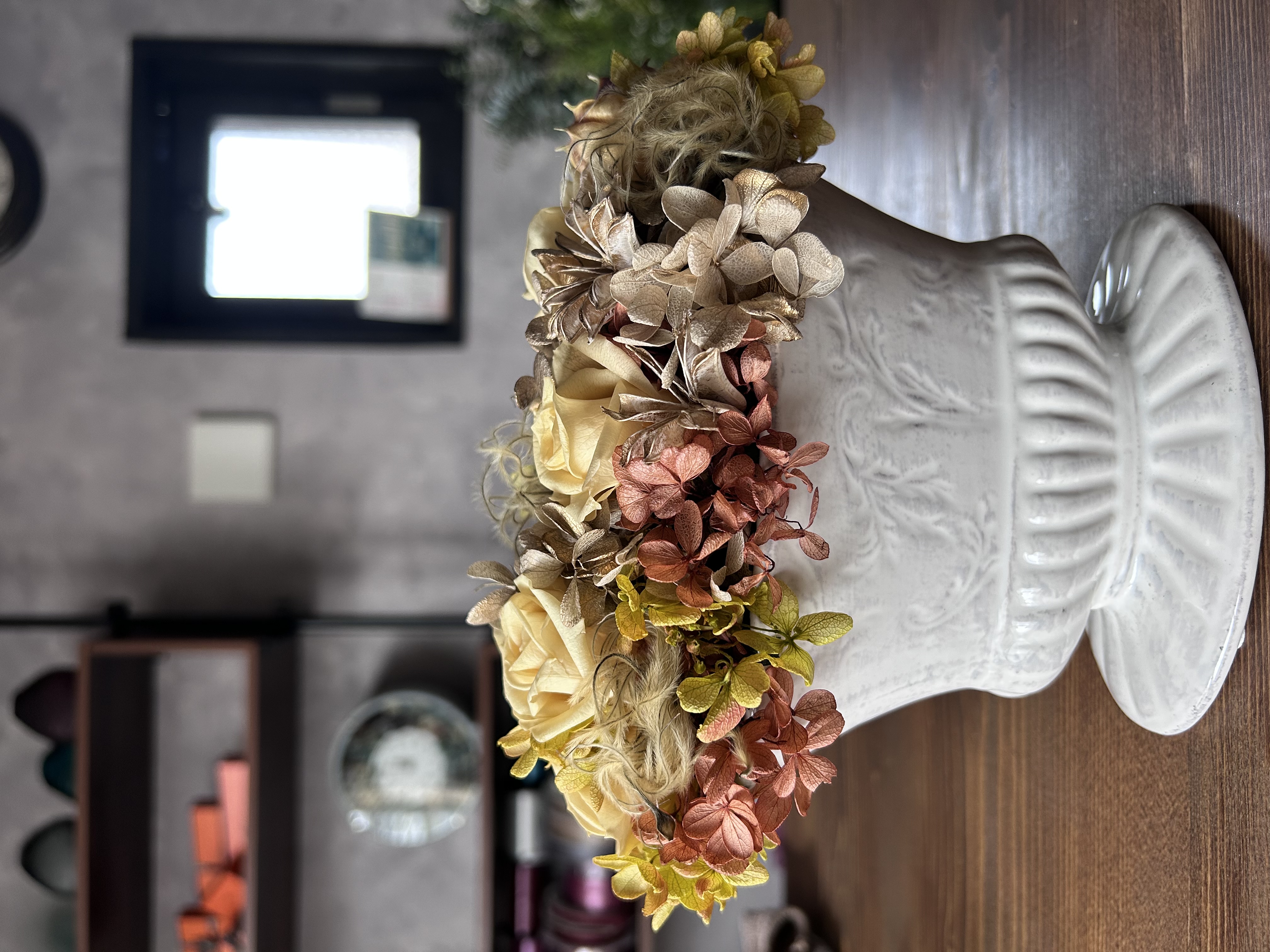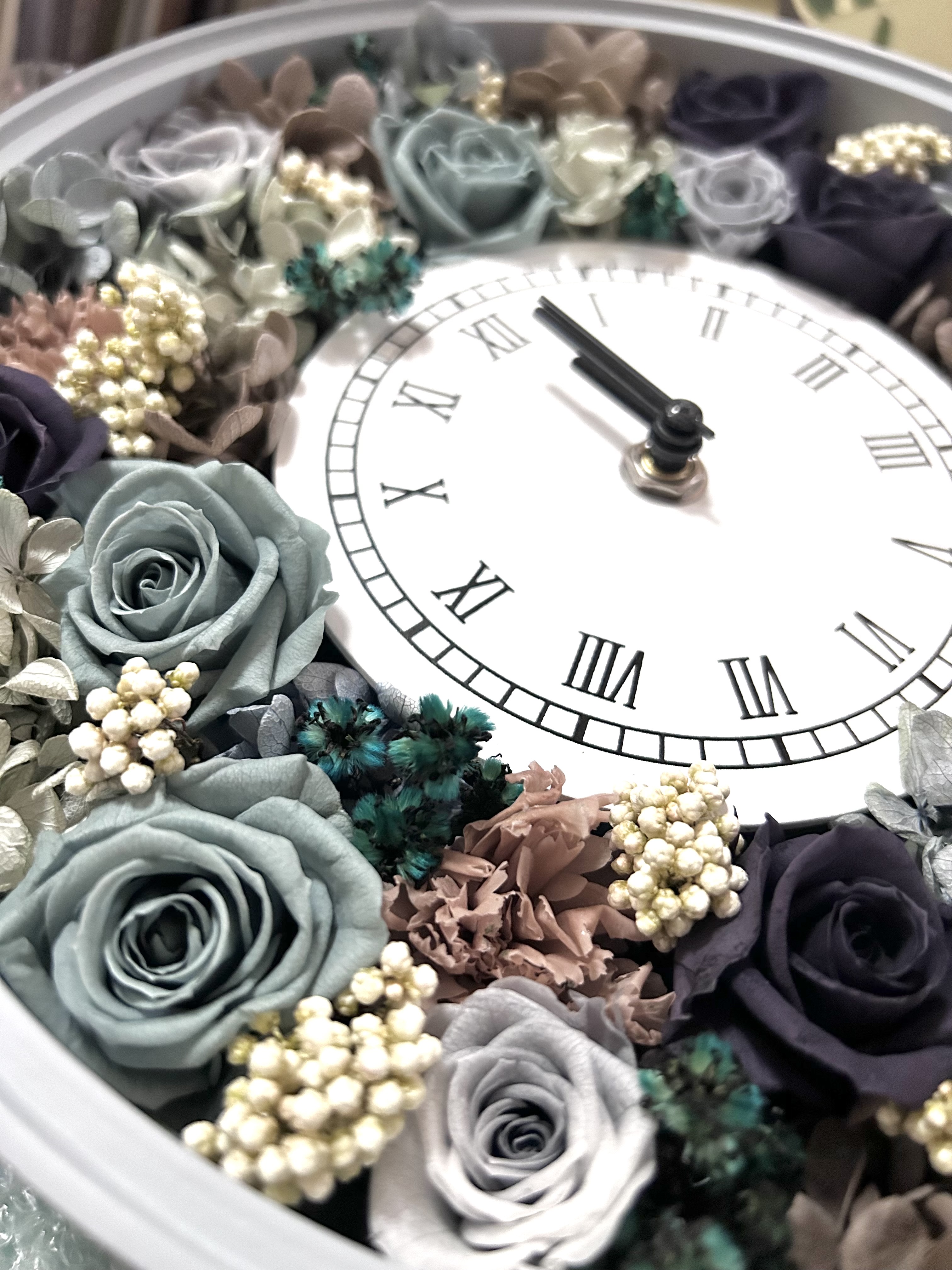 プリザーブドフラワー ラウンド花時計 フレンチグレー